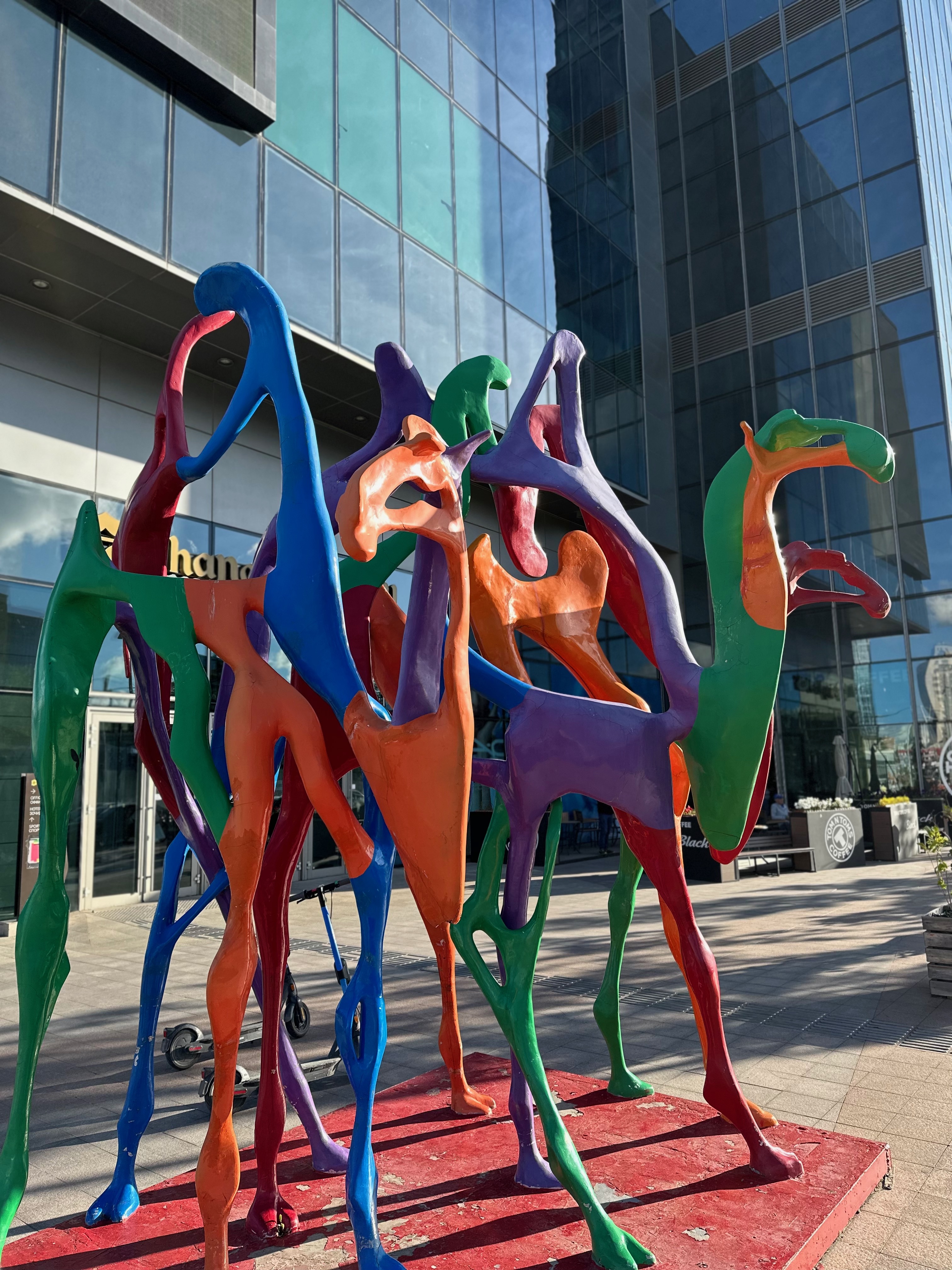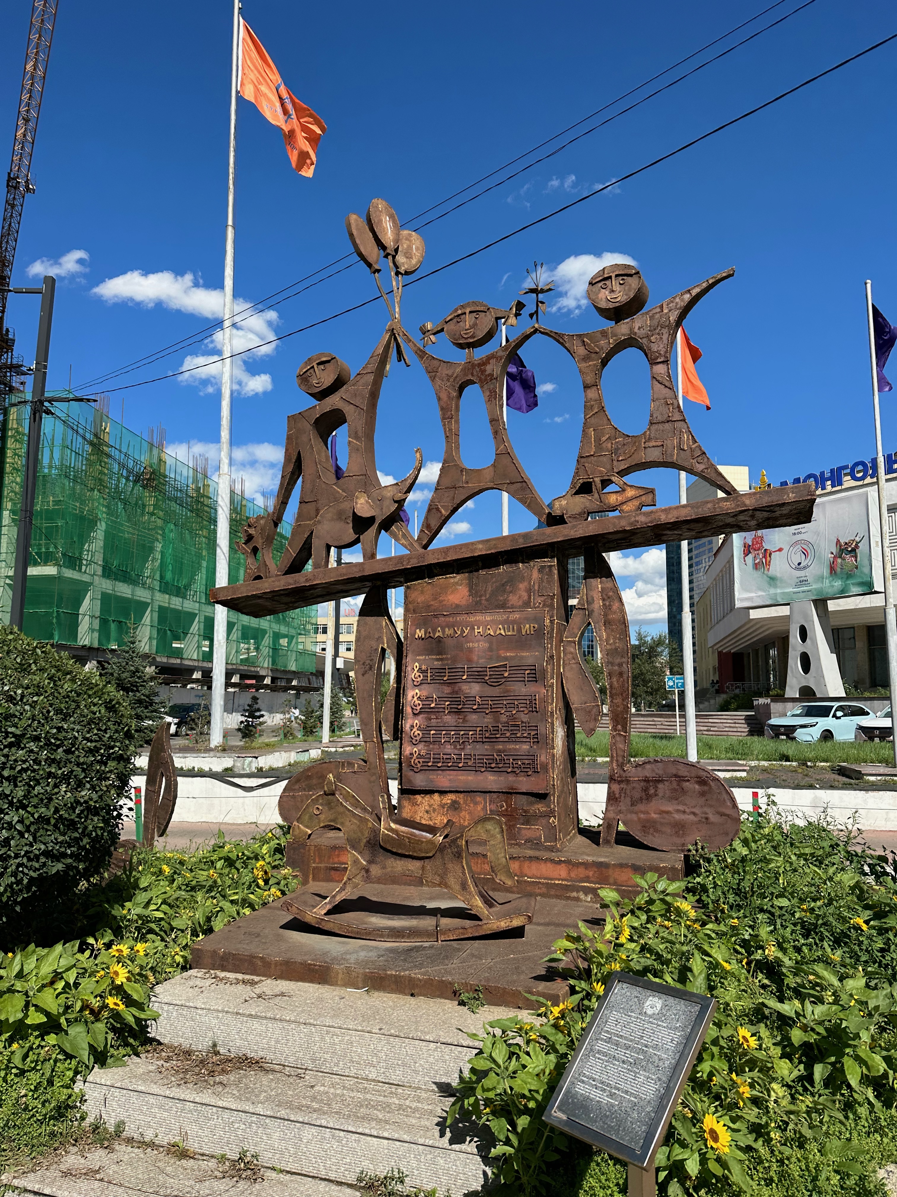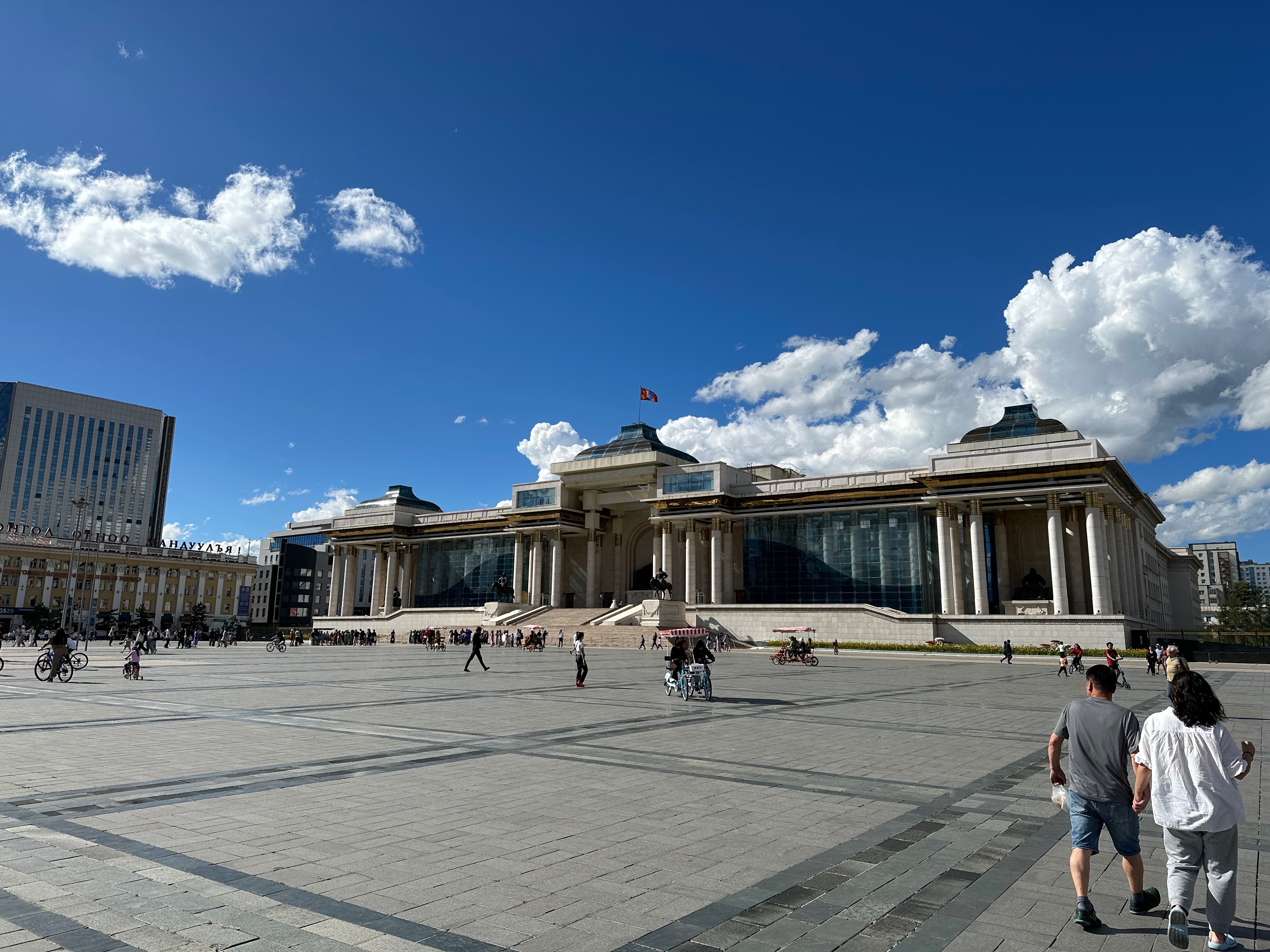 After returning to our apartments and leaving our stuff behind, some new friends and I went out to explore. We walked so much around the city. There is public art everywhere and I loved getting to see all the modern buildings next to Soviet style architecture and even some traditional Mongolian palaces. Something I had been looking forward to since taking the job was going to Sukhbaatar Square, the large public plaza in front of the Mongolian Parliament building with a huge statue of Chinggis Khan (Genghis Khan’s actual name). I’d been especially wanting to see the opera house, which is a beautiful pink building where the state opera and ballet perform.